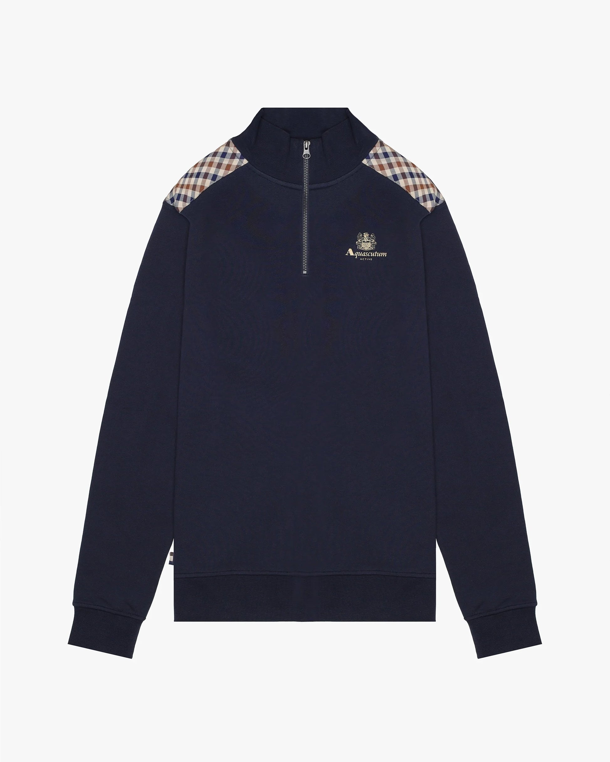 Aquascutum Active Club Check Shoulder Quarter Zip Jumper Navy