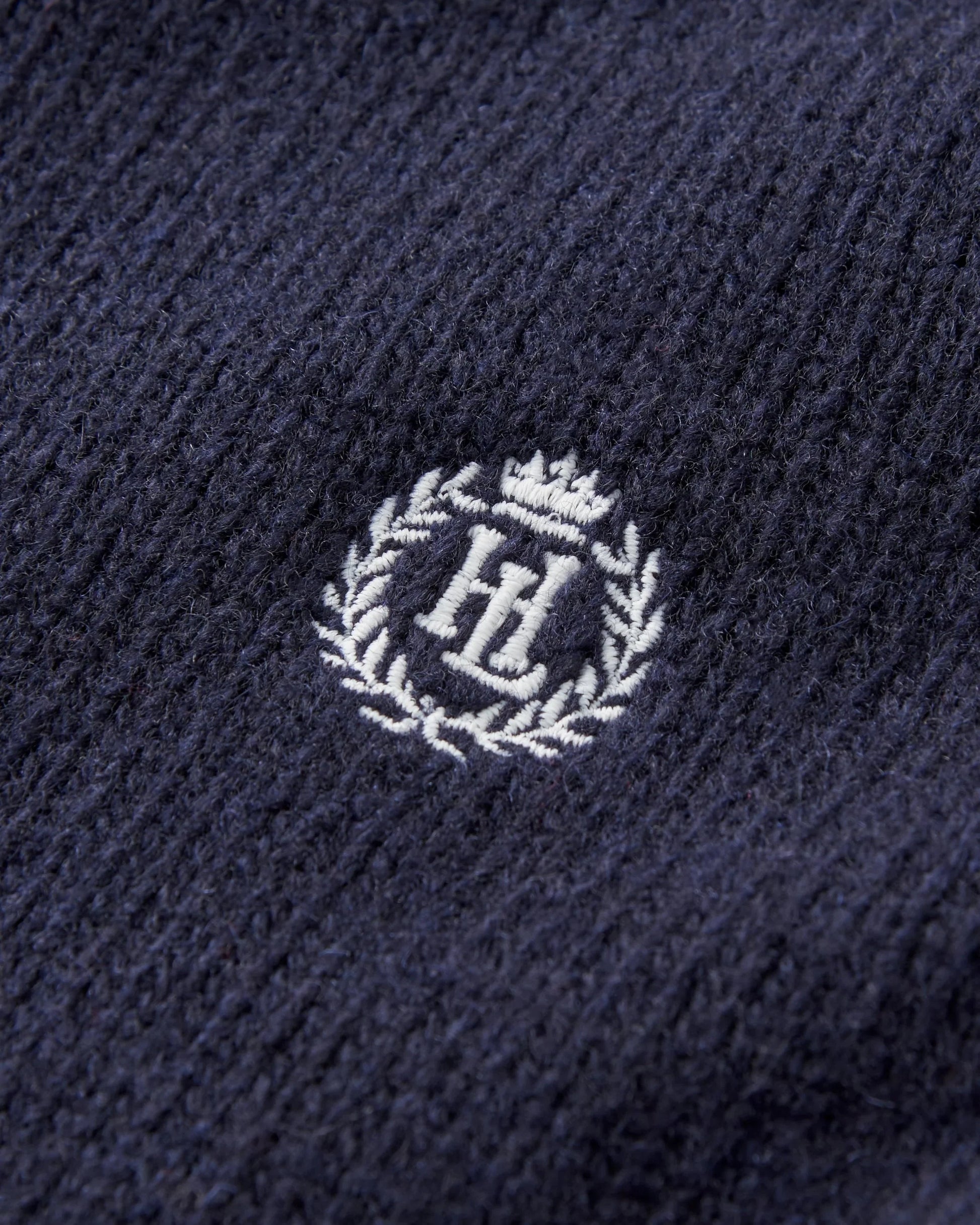 The Henri-Lloyd Clew Mock Neck Jumper in navy is built with a sharp mock neck design and a structured knit, offering a clean silhouette rooted in sailing heritage. A subtle branded patch adds identity without distraction, making it a smart layering option in the Henri-Lloyd sweater line.
