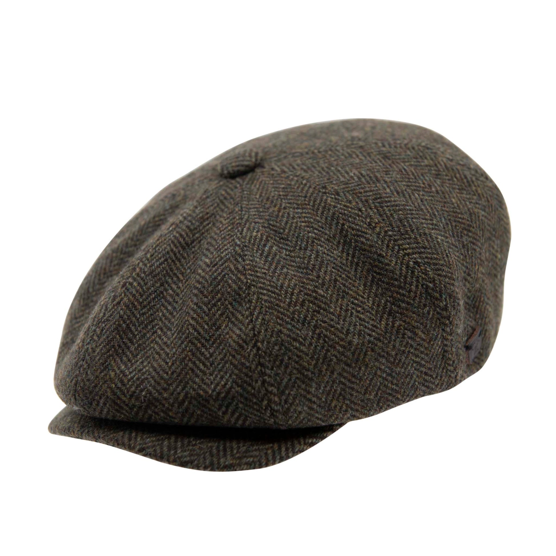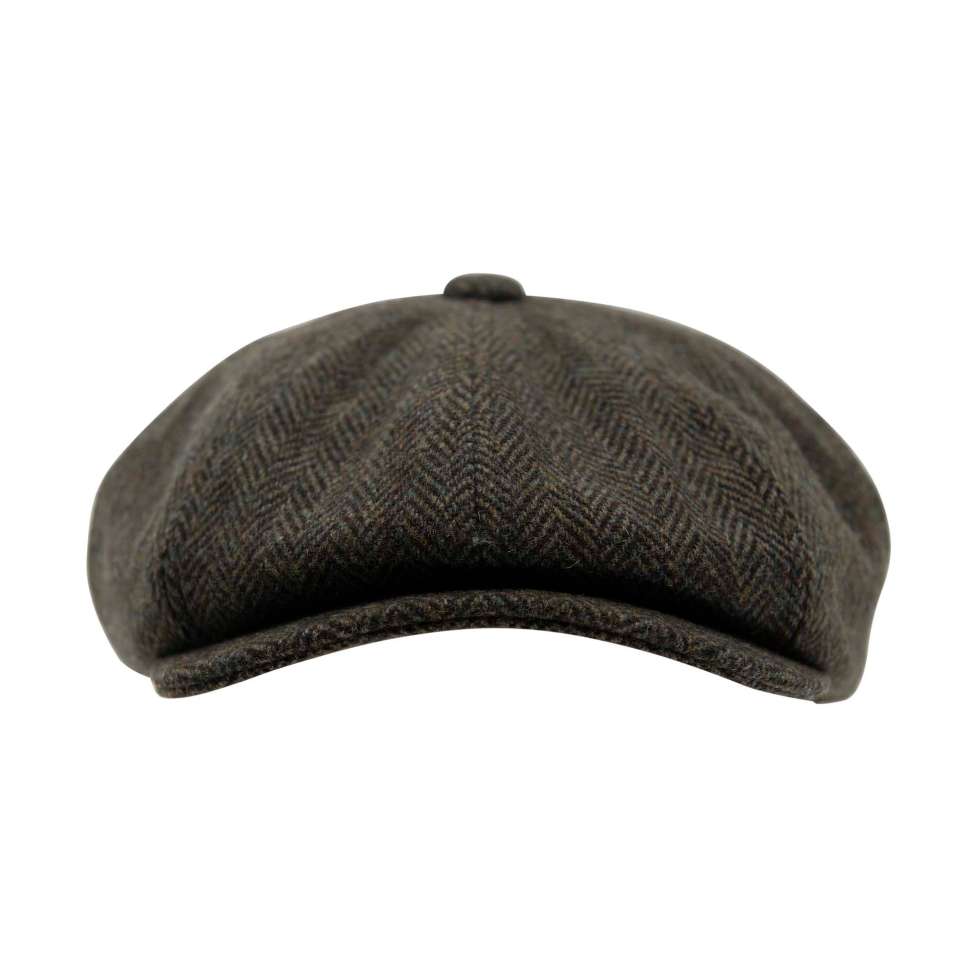 The Carlyle Jumbo Herringbone Wool Newsboy Cap in brown offers a traditional silhouette with a standout jumbo herringbone pattern. Made from warm wool with a structured peak and panelled crown, it delivers a refined heritage look with everyday comfort.