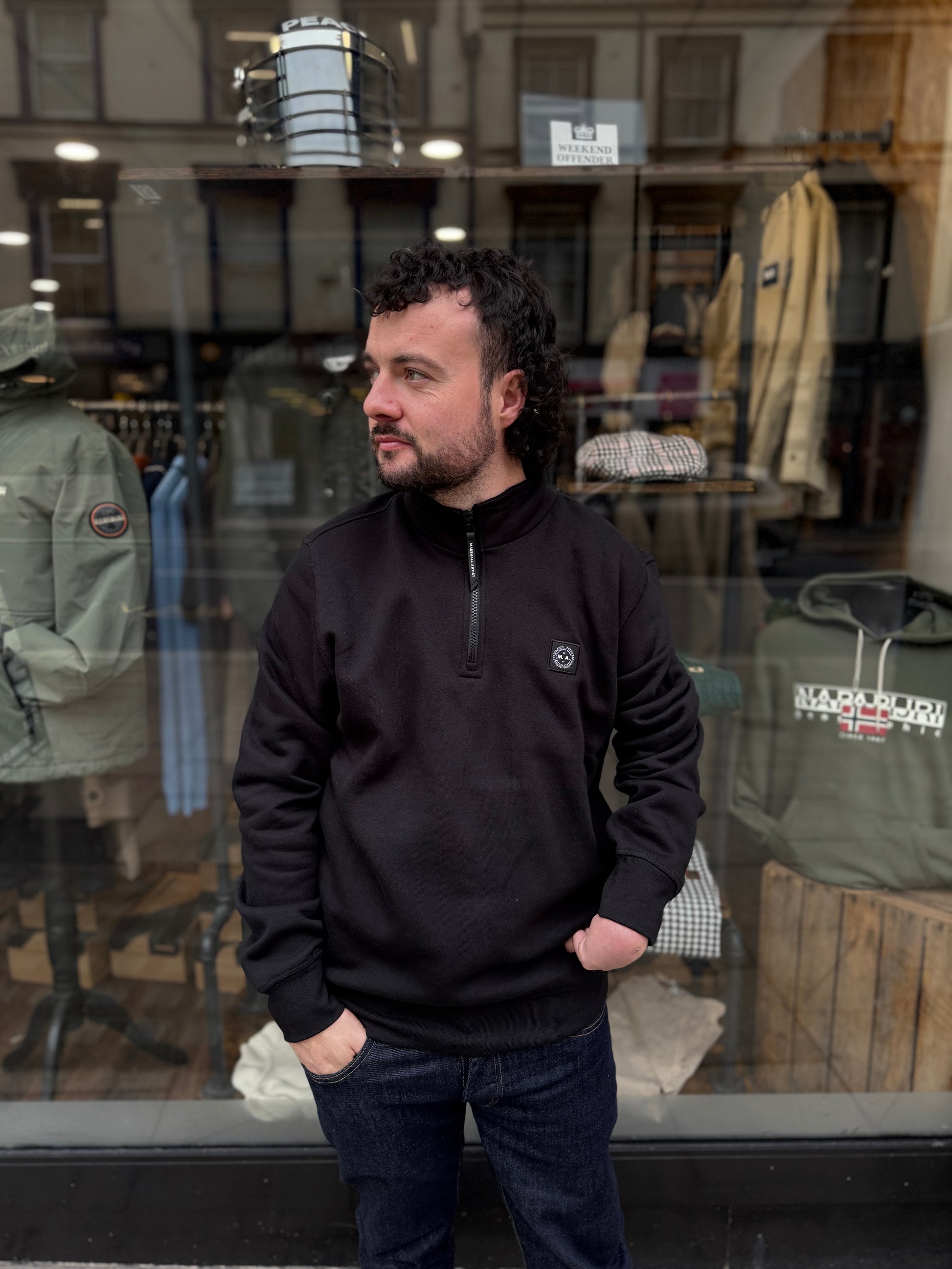 The Marshall Artist Marchio Quarter Zip in Black combines casual comfort with signature terrace styling. Made from soft cotton blend fabric, it’s cut with a high collar, front quarter-zip, and tonal raised logo on the chest — ideal for layering across the seasons.